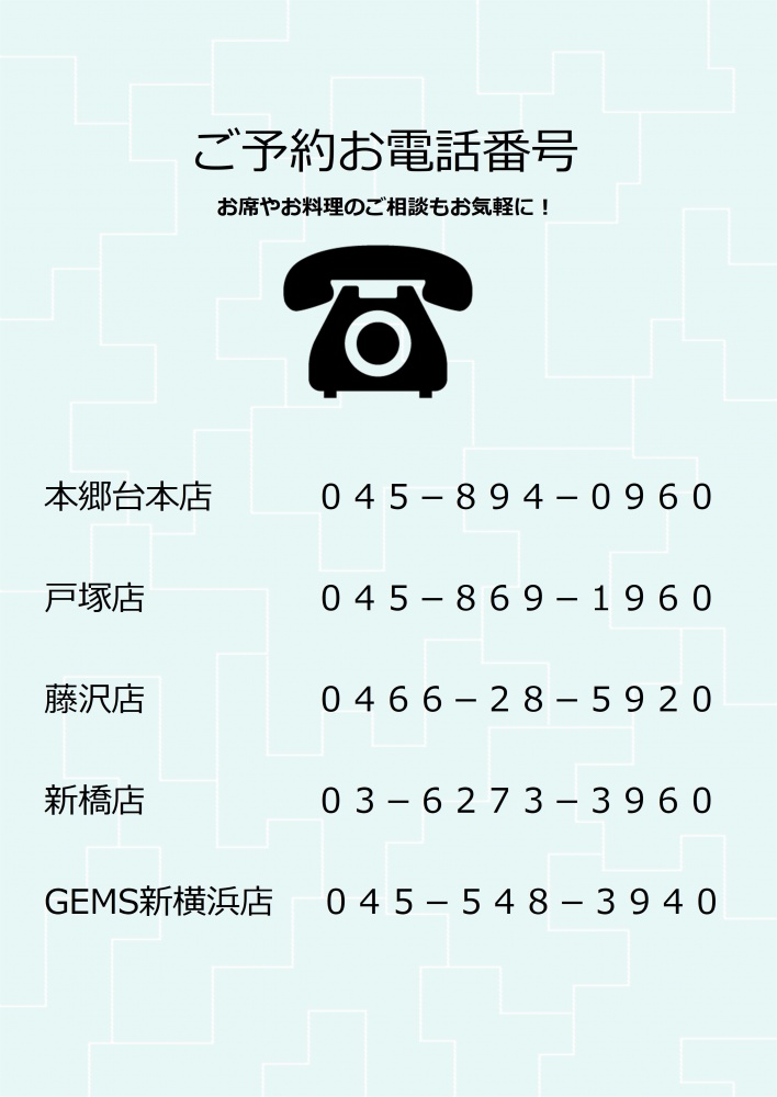 *席数に限りがある為、ご予約がお薦めです。