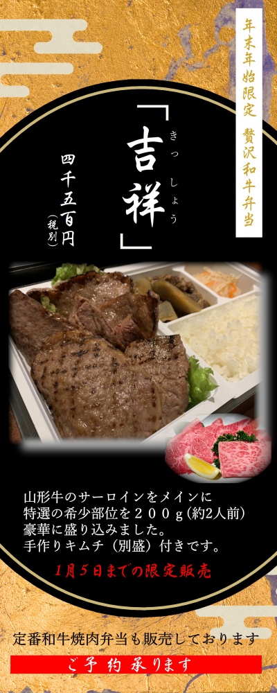 焼肉おくう各店舗では、お正月を祝うお年玉付き焼肉盛皿やお得がいっぱいの福袋、また、年末年始をご自宅でお過ごしになるお客様のために、期間限定の贅沢焼肉弁当をご用意しました!皆様のご来店お待ちしております♪ 詳しくはこちらご覧下さい!