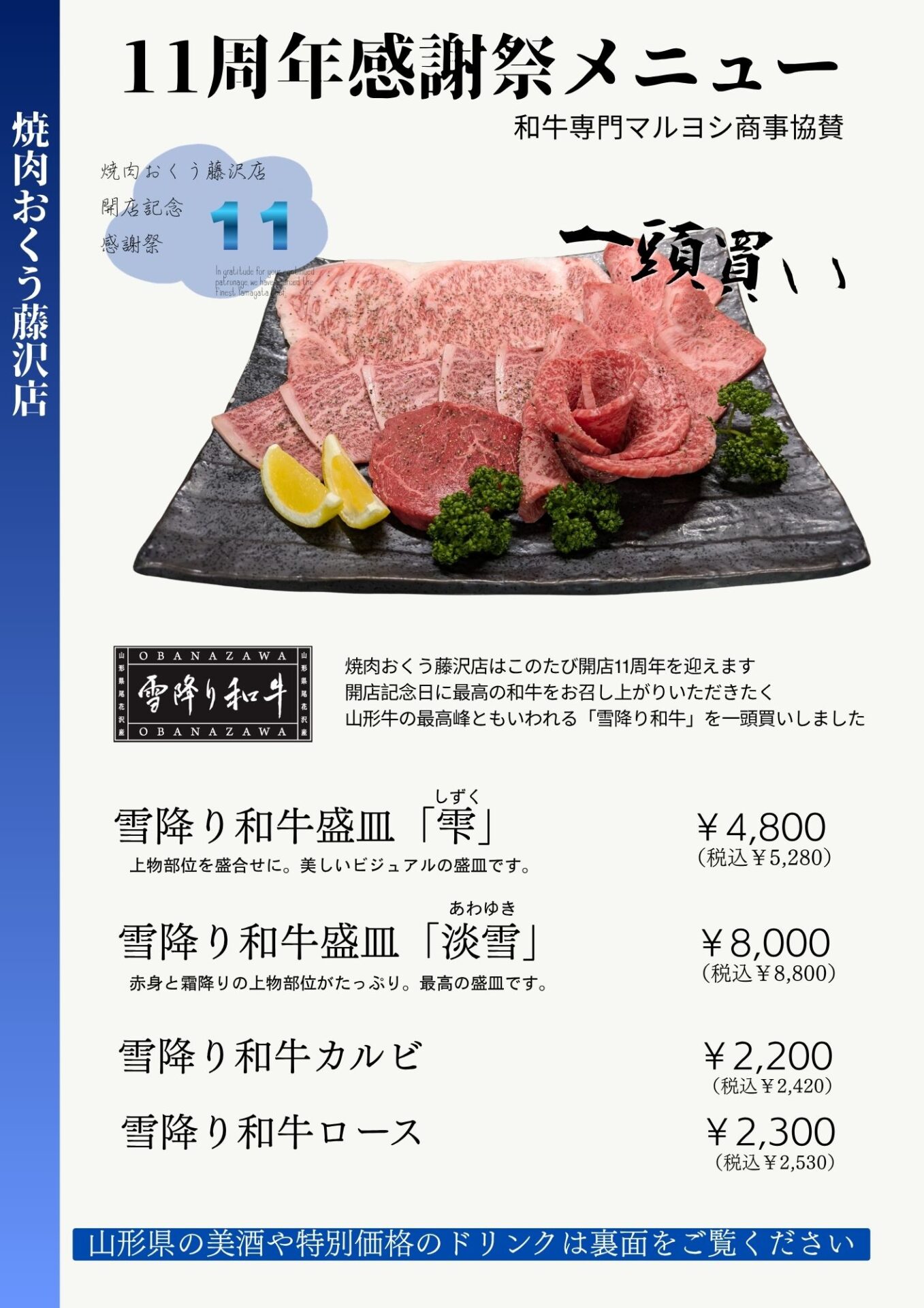 【藤沢店11周年】最高峰「雪降り和牛」一頭買い!感謝の2日間!