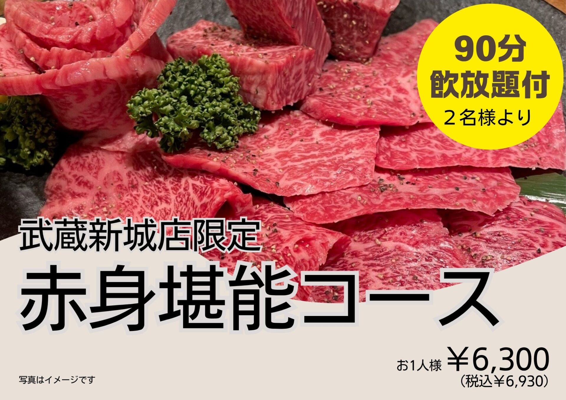 ◆ 【武蔵新城店限定】飲み放題付赤身堪能コース(2026.3.30更新)