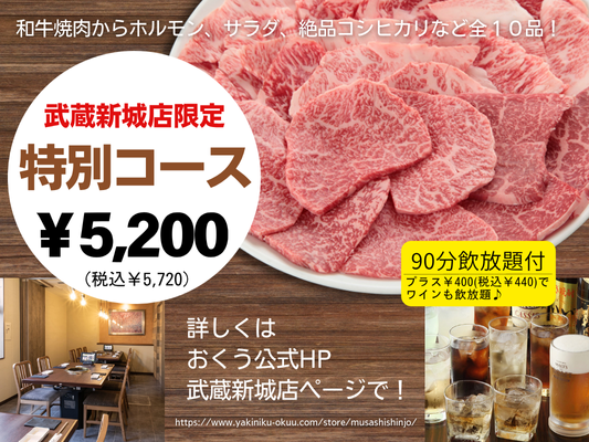 今年の締めくくりは、武蔵新城店限定★特別コース★で贅沢に和牛を堪能しませんか?