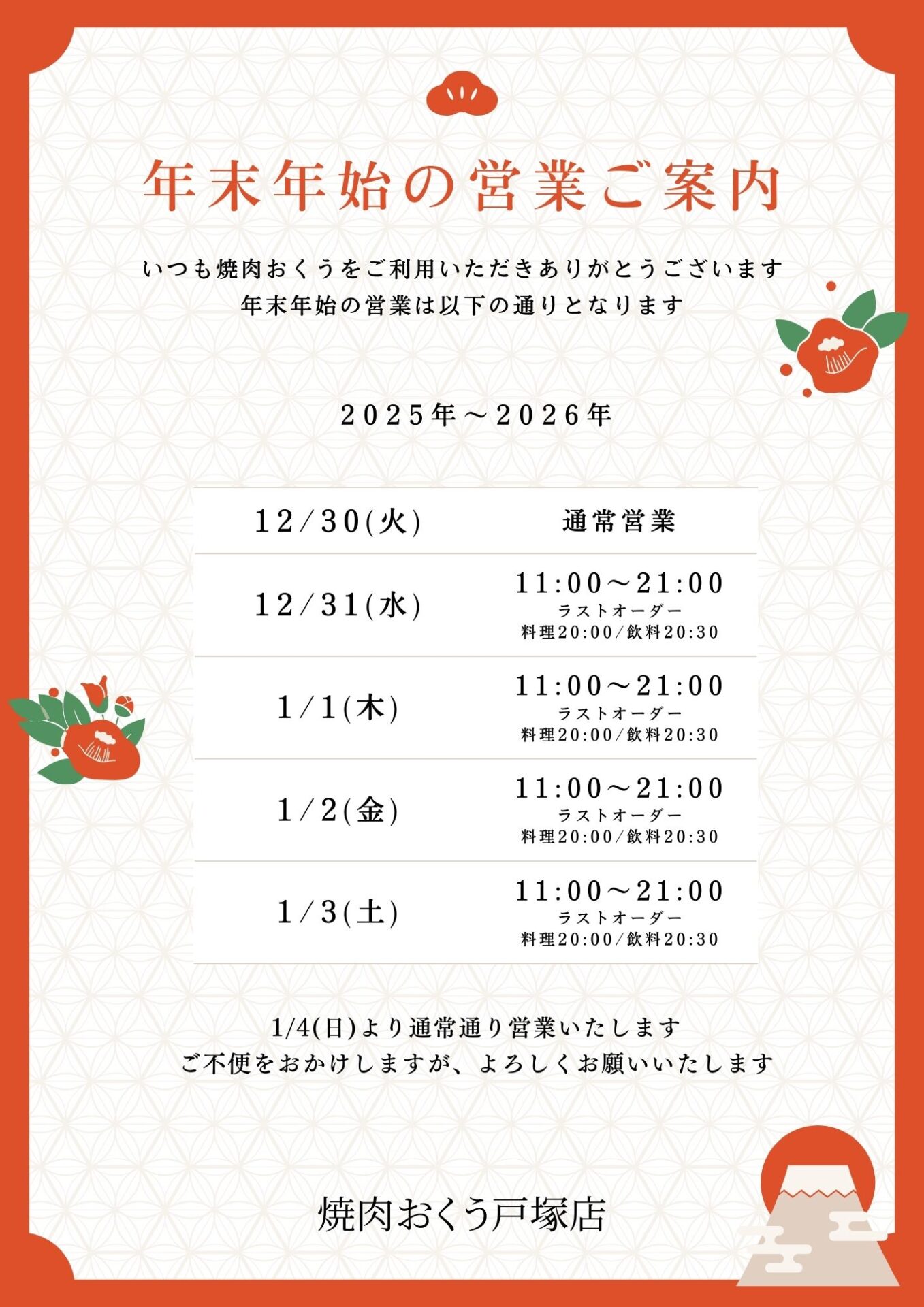 ◆ 年始営業時間のお知らせ (2025.12.4更新)